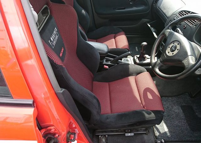 On the outside, the Tommi Makinen Edition had an optional special paint package, Passion Red with grey, black and white stripes, that was inspired by the Tommi Makinen WRC works car and wore the same design Enkei 17” wheels. On the inside, the car came equipped with Recaro bucket seats with the Tommi Makinen logo stitched into the back rest.