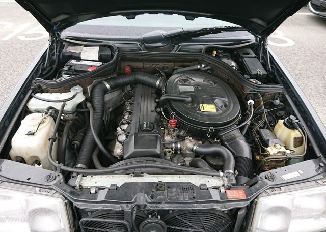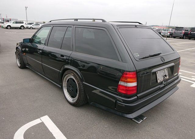 Turning now to this car itself, this “station wagon.” Click on the photos above and you’ll find yourself looking at a very clean, well cared for, high spec, and low mileage car (118,393km / 73,565 miles on the odometer). Rich, yet sporty interior and serious load capacity is what you’re seeing on the inside, and the hard-ass AMG body kit, tinted windows, lowered suspension, and fat, road-grabber alloys is what you’re getting on the outside. You can growl down the highway in this guy, that’s for sure, and you’ll just scare the people out of your way on looks and cool factor alone! Under the bonnet you’ve got one of Mercendes Benz’s silky smooth and muscular straight six gasoline engines, the M103; in this case the 3.2 liter version. (The 103.983 to use Benz’s nomenclature.) These engines give good grunt but are not particularly highly stress units, with compression ratios under 10:1. They’ll last forever and Mercedes-Bens parts availability is excellent.