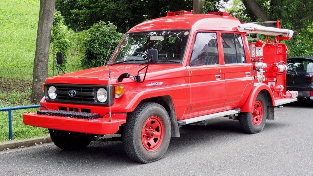 These are, of course, based on serious off road, full size machines. They can carry more fire fighting kit than a kei truck based unit, but they are heavier and larger, so they won’t be able to get into those really tight places where only a minitruck fire truck can save your bacon.